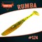 RUMBA эта приманка имеет прогонистое тело с внутренними ребрами по всему телу, который придают ей более реалистичную игру. Спинка у приманки ровная, с выемкой под офсетный крючок. В области головы она имеет два шара в виде глаз, которые укрепляют переднюю часть приманки, за счёт чего она более долго остаётся в строю.